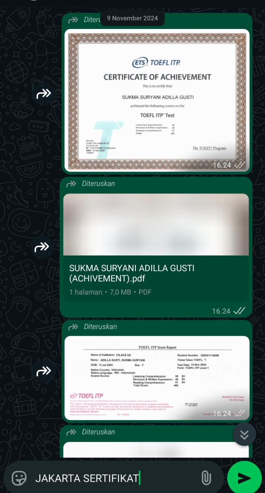 Sertifikat TOEFL ITP (Institutional Testing Program)