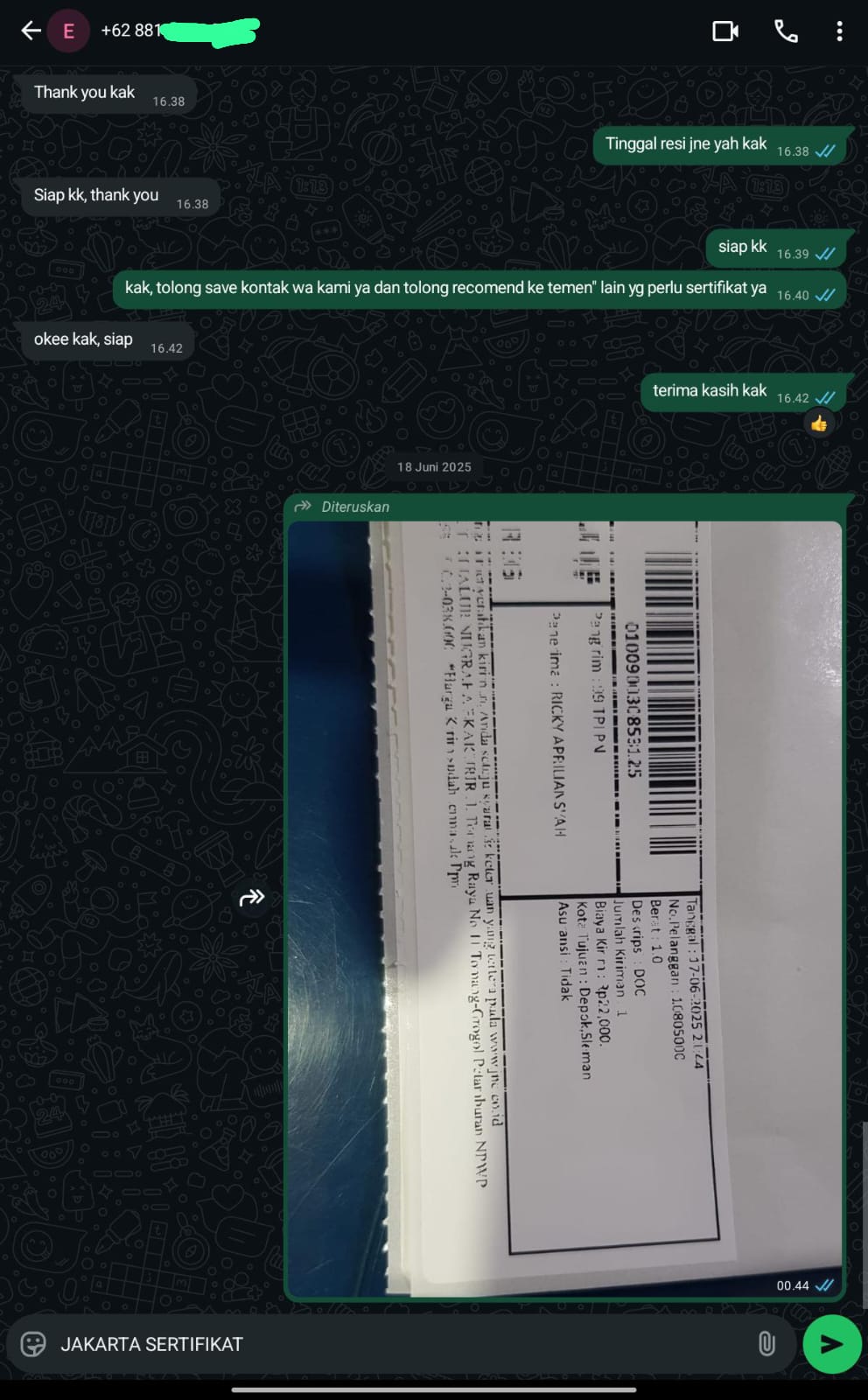 Jakarta. Sertifikat.